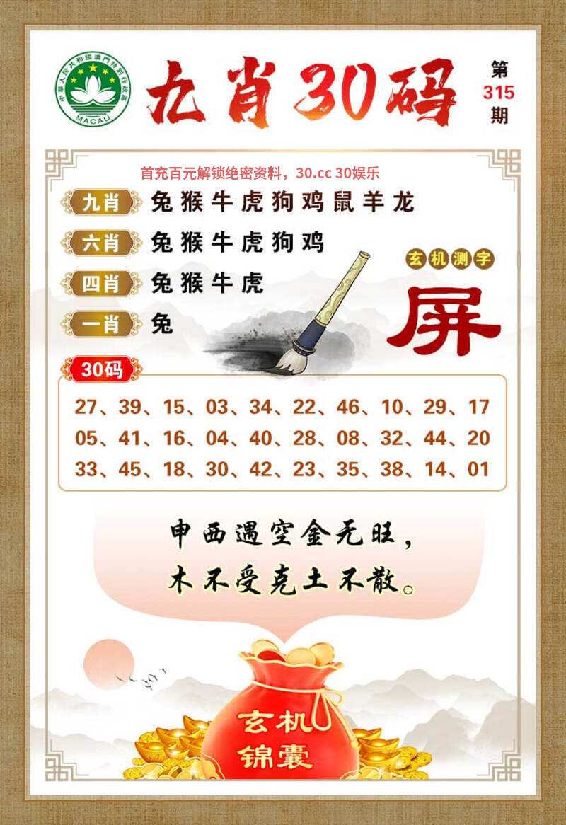 315期九肖【猪鸡猴蛇牛兔龙鼠】开:虎04准